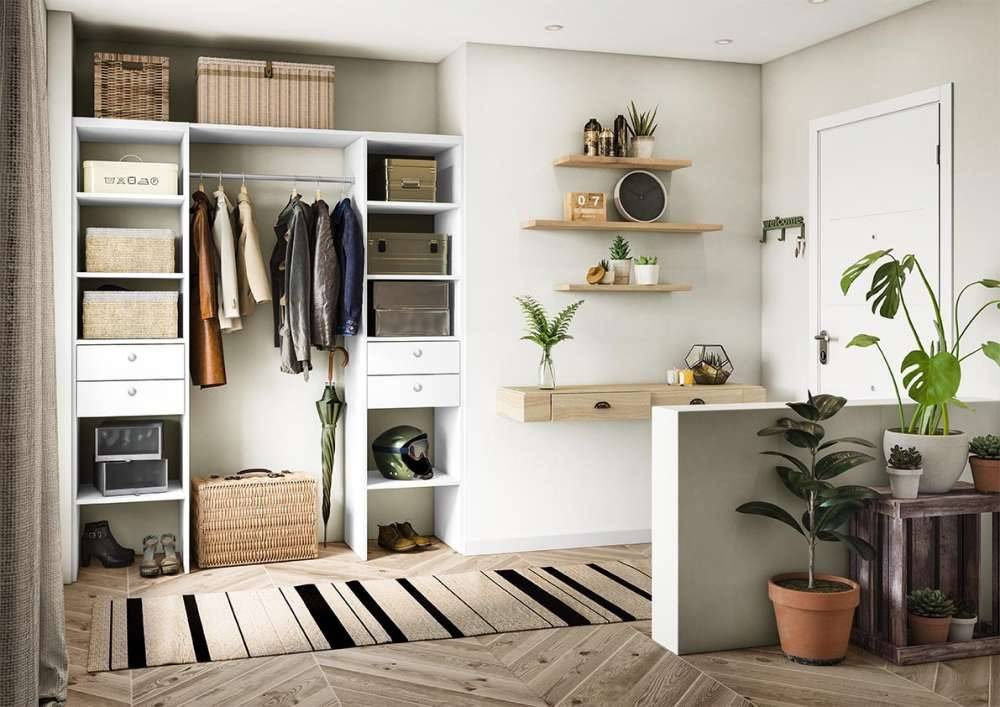 Photo: Rangement entrée Moduléco® + décor Blanc Perlé, tiroir plat Blanc Perlé.