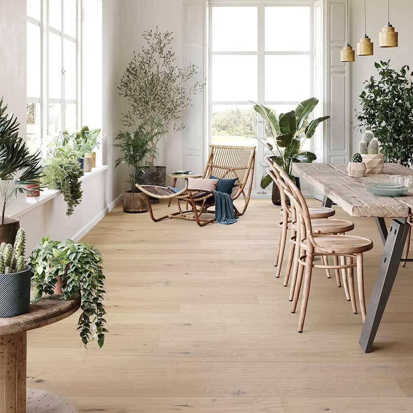 Le Chêne ferme invisible quant à lui, il se compose d'un ton blanc très élégant. Ce parquet clair est un indispensable dans une pièce moderne et lumineuse.