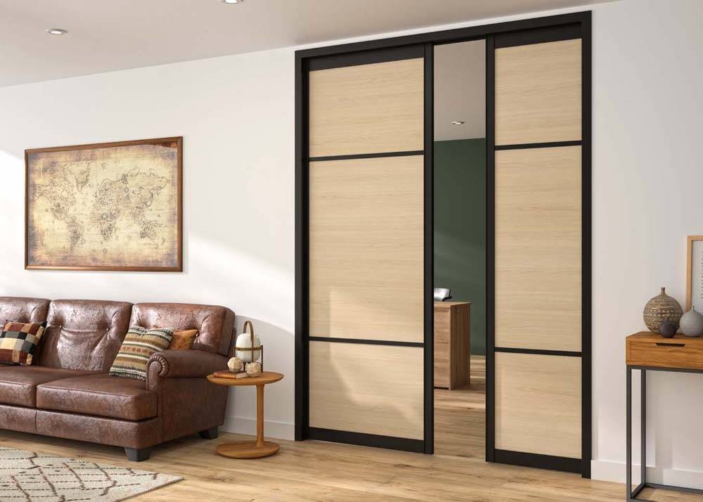 Actuelle et tendance, parcourue par de fines traverses qui soulignent l'originalité de ses lignes, la porte coulissante de séparation de pièces à trois partitions dissymétriques Sogalslide® Émotion aime les contrastes. Elle s'intègre parfaitement dans un univers moderne et épuré. Suspendue ou roulant au sol, grâce à ses mécanismes silencieux, le déplacement de ses parois se fait sans à-coups. Alliance de la légèreté et du design. Privilégiez aussi un gain de place total en adoptant le châssis pour galandage Sogal.