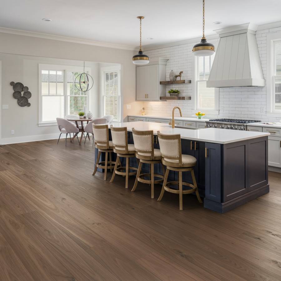 Le revêtement de sol hybride Bjelin en Noyer est conçu pour capturer l'essence authentique du bois de noyer. Son grain riche et ses nuances chaleureuses apportent une touche de luxe à n'importe quelle pièce.