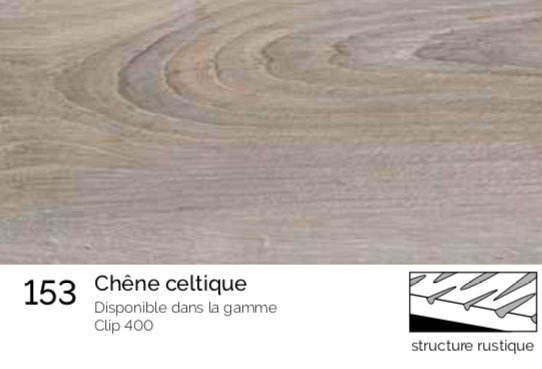 La gamme clip 400 d'une épaisseur de 8 mm s'intègre parfaitement à tous les intérieurs. Riche de 18 modèles de sol, facile à poser grâce avec son système de clip 5G, il saura vous séduire.