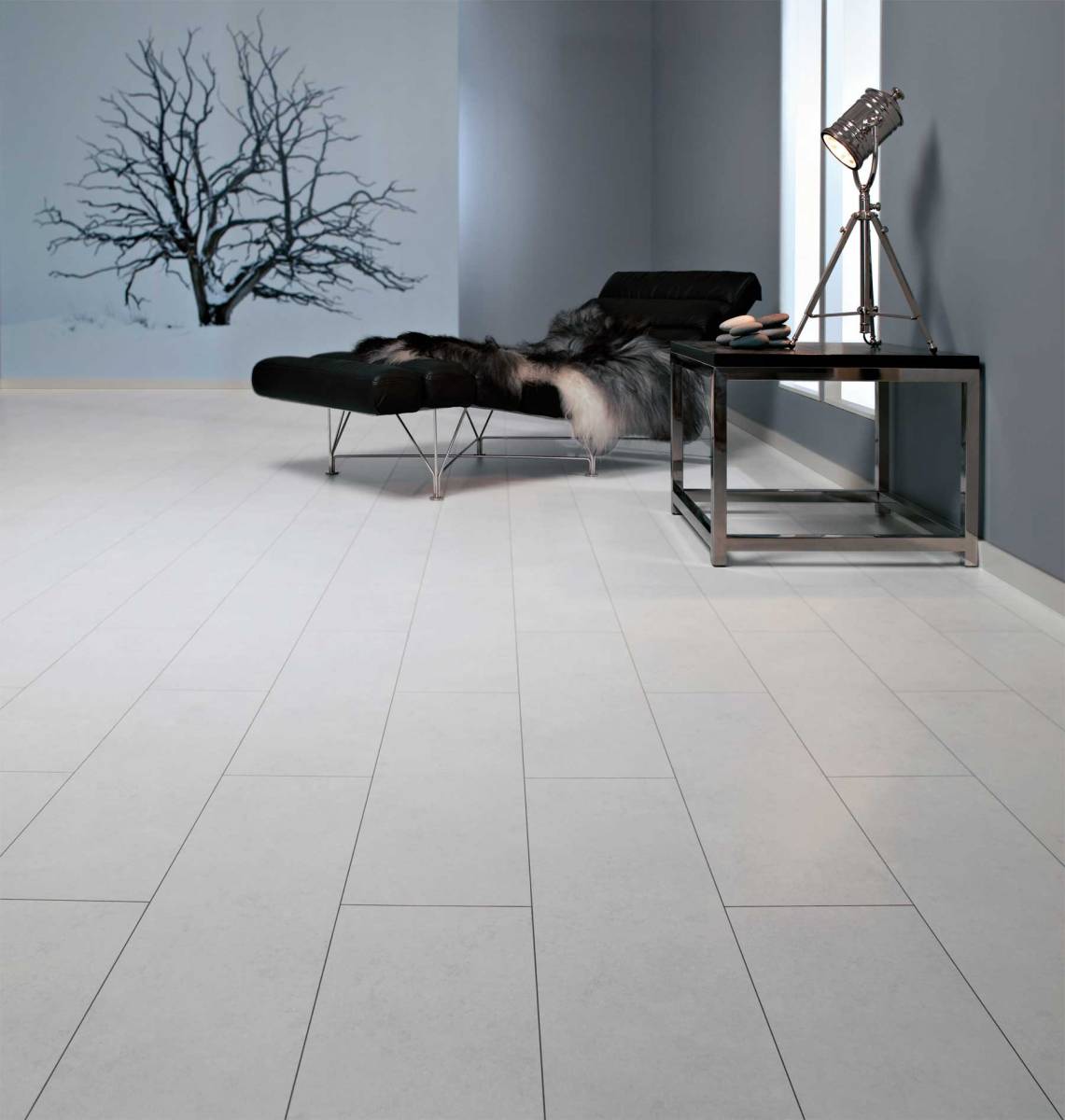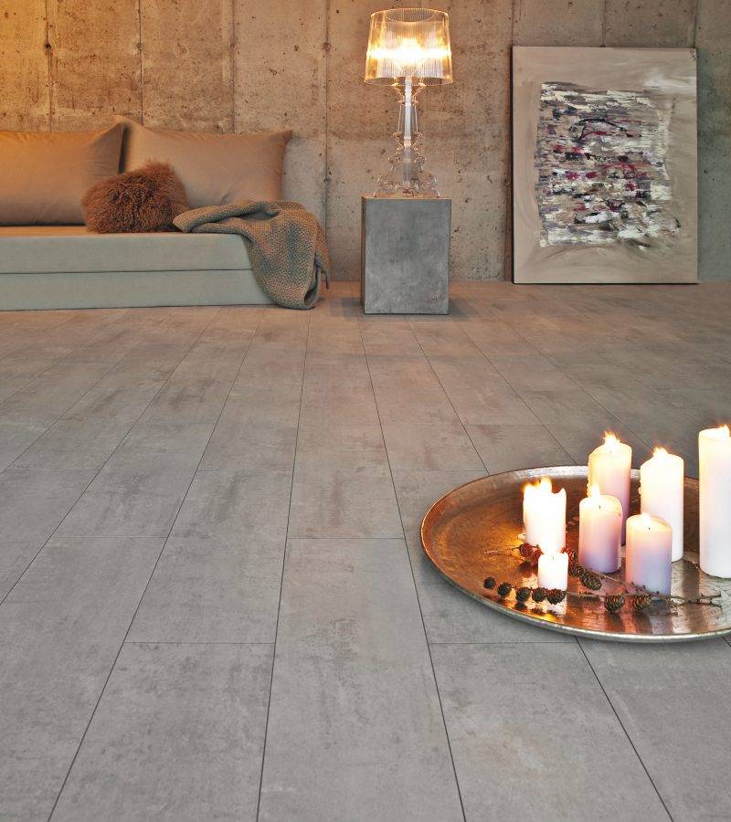 sol stratifié imitation dalle en pierre avec une sous-couche intégrée et une installation facile !