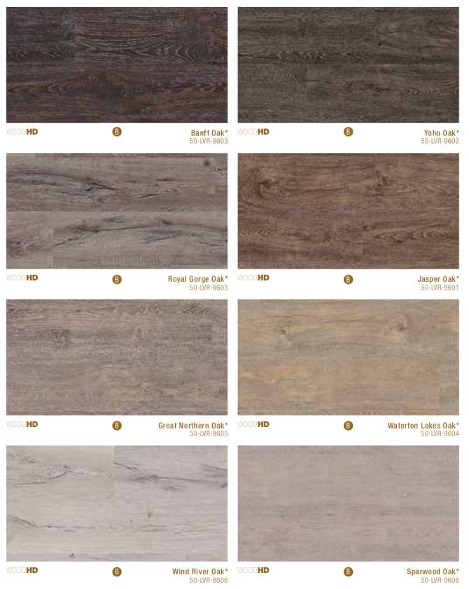 Le sol vinyle imitation bois Usfloor Coretec HD et HD + se décline en 8 coloris :