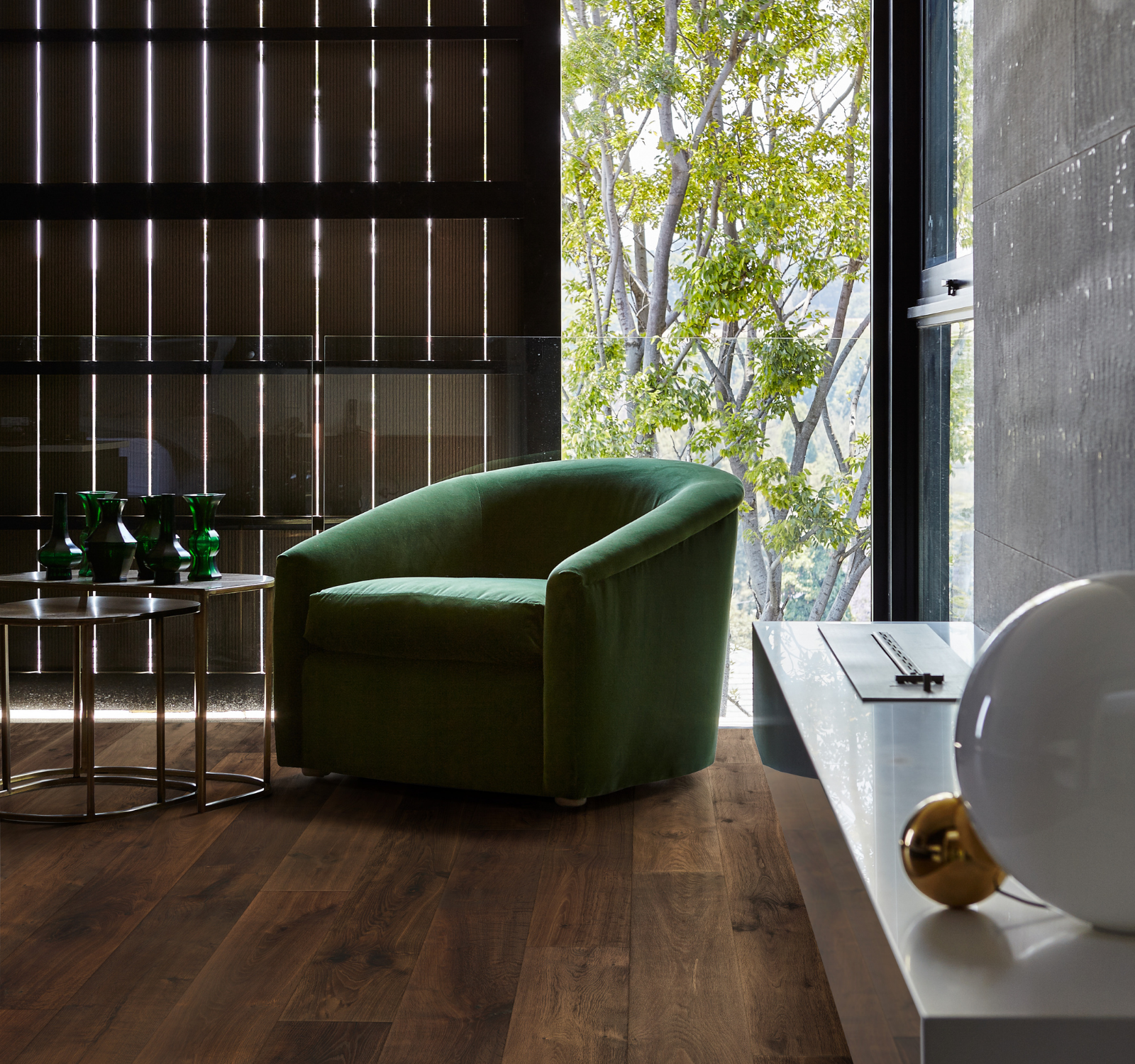 Ce parquet contrecollé de la collection Domani incarne le parfait équilibre entre le style vintage, la vie et le confort moderne.