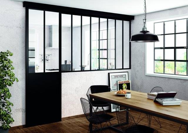 Créer une verrière avec porte vous permettra d'exploiter un grand espace de vie quotidienne, tout en conservant les atouts clarté et lumière de votre pièce. L'avantage de ce modèle est que vous pouvez installer une porte afin de ne pas condamner l'accès à la pièce qu'elle cloisonne.